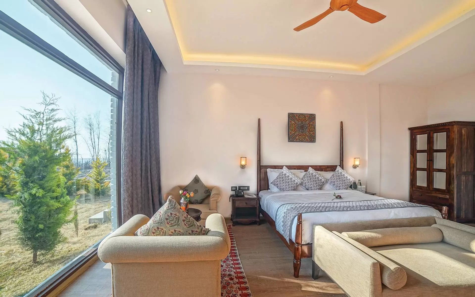 The Rah Bagh, an idyllic new retreat on the outskirts of Srinagar, evokes the beauty of Kashmir. This 33-room luxury boutique resort designed in the Alpine chalet style is set over 3 acres, within an apple orchard, framed by towering poplars. Away from the hustle-bustle, the sprawling gardens, picturesque views of the Dal and Nageen lakes and the Zabarwan Mountains as the backdrop make this resort an ideal getaway.